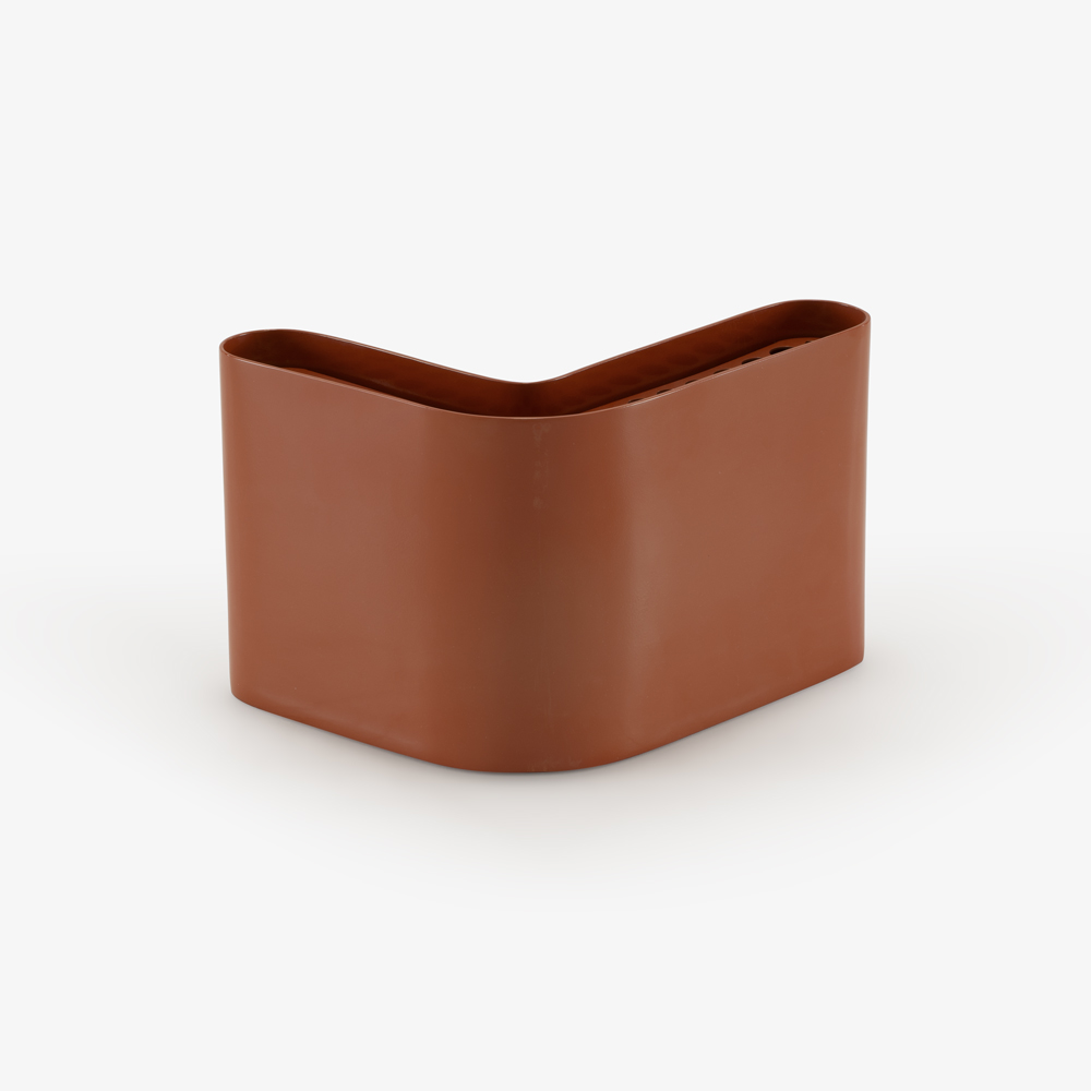 Vase en acier inoxydable découpé laser : nickelé vernis aspect beige rosé, laqué coloris orange, laqué coloris rouge.