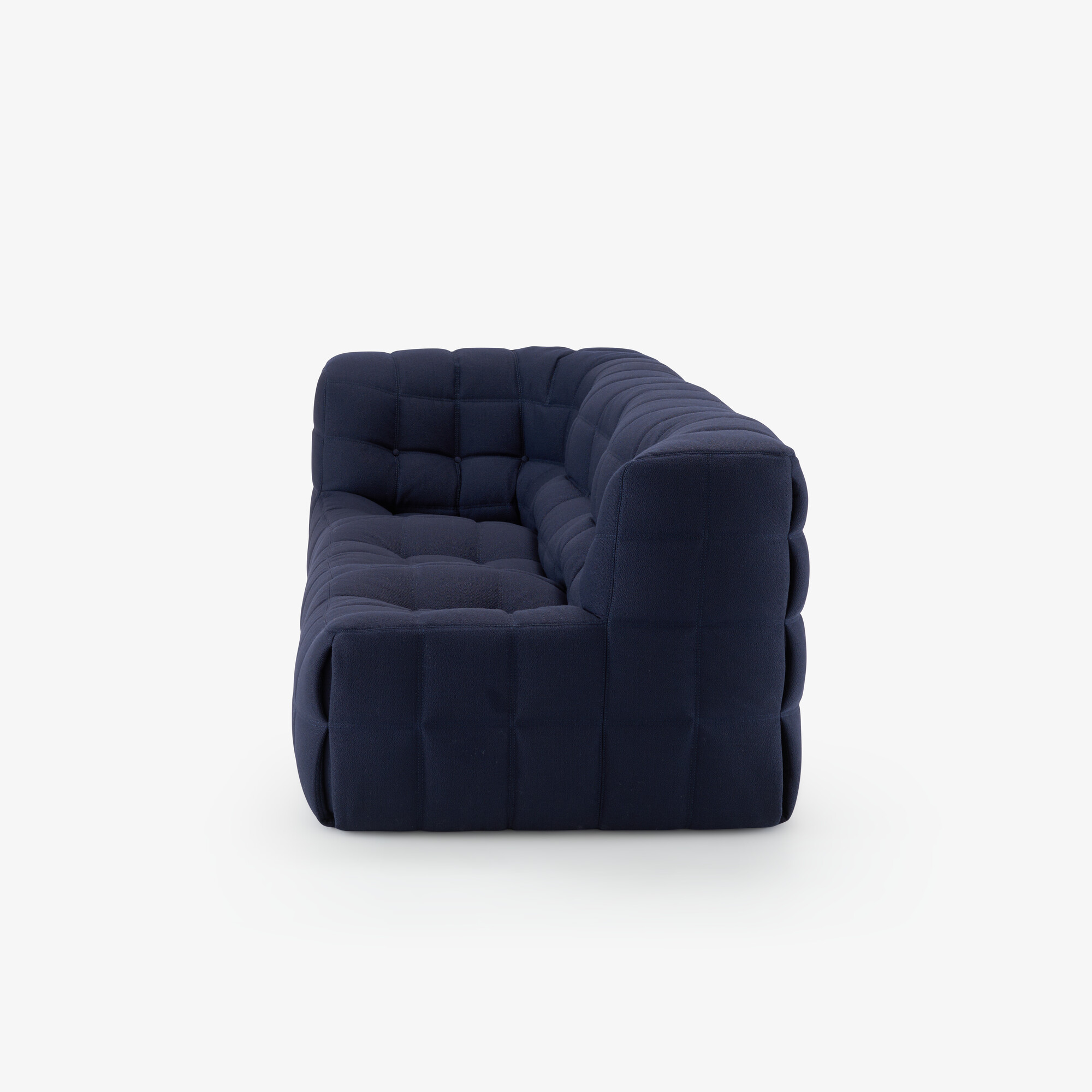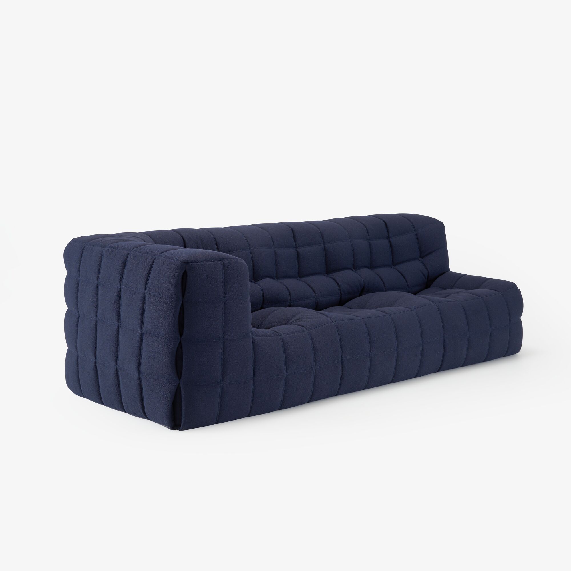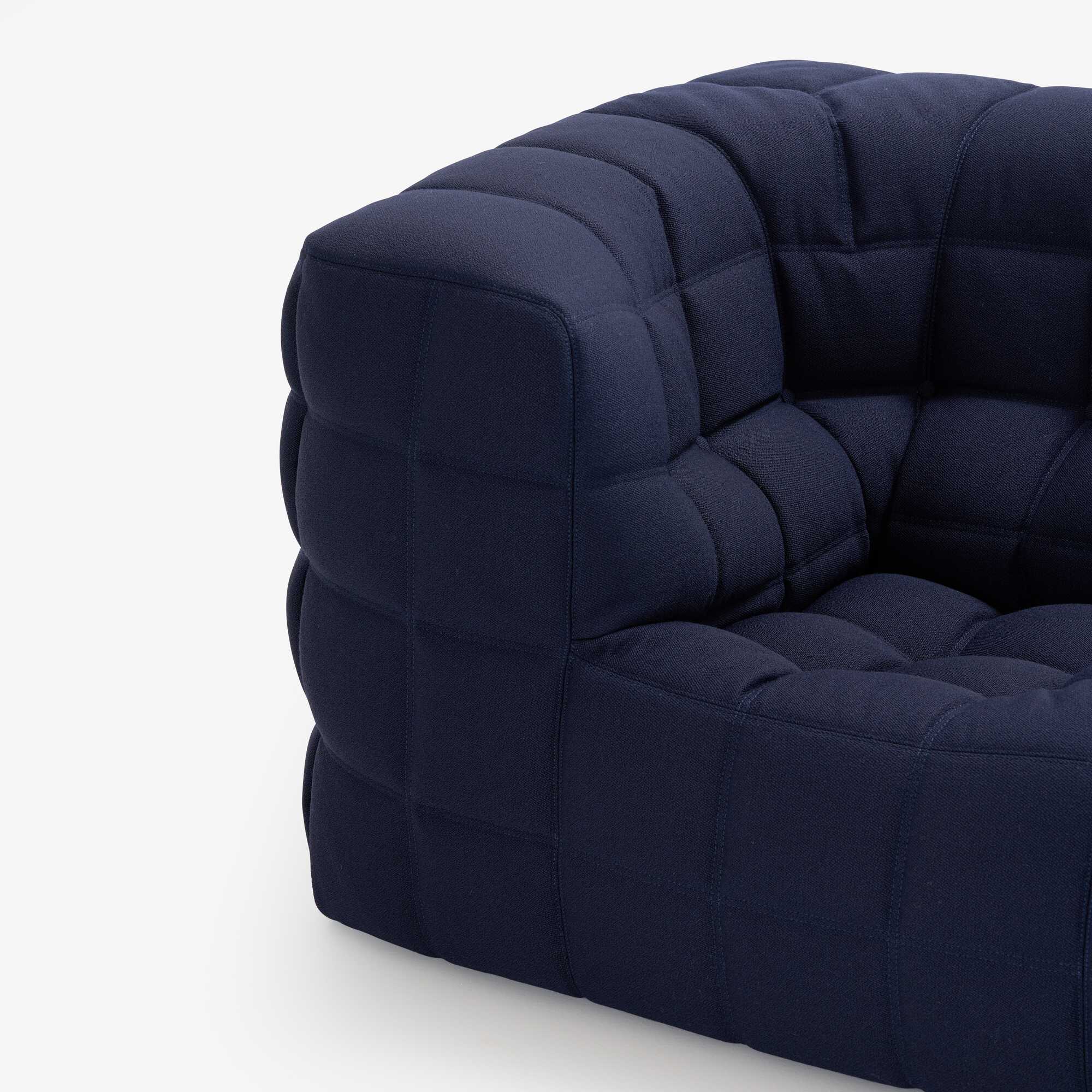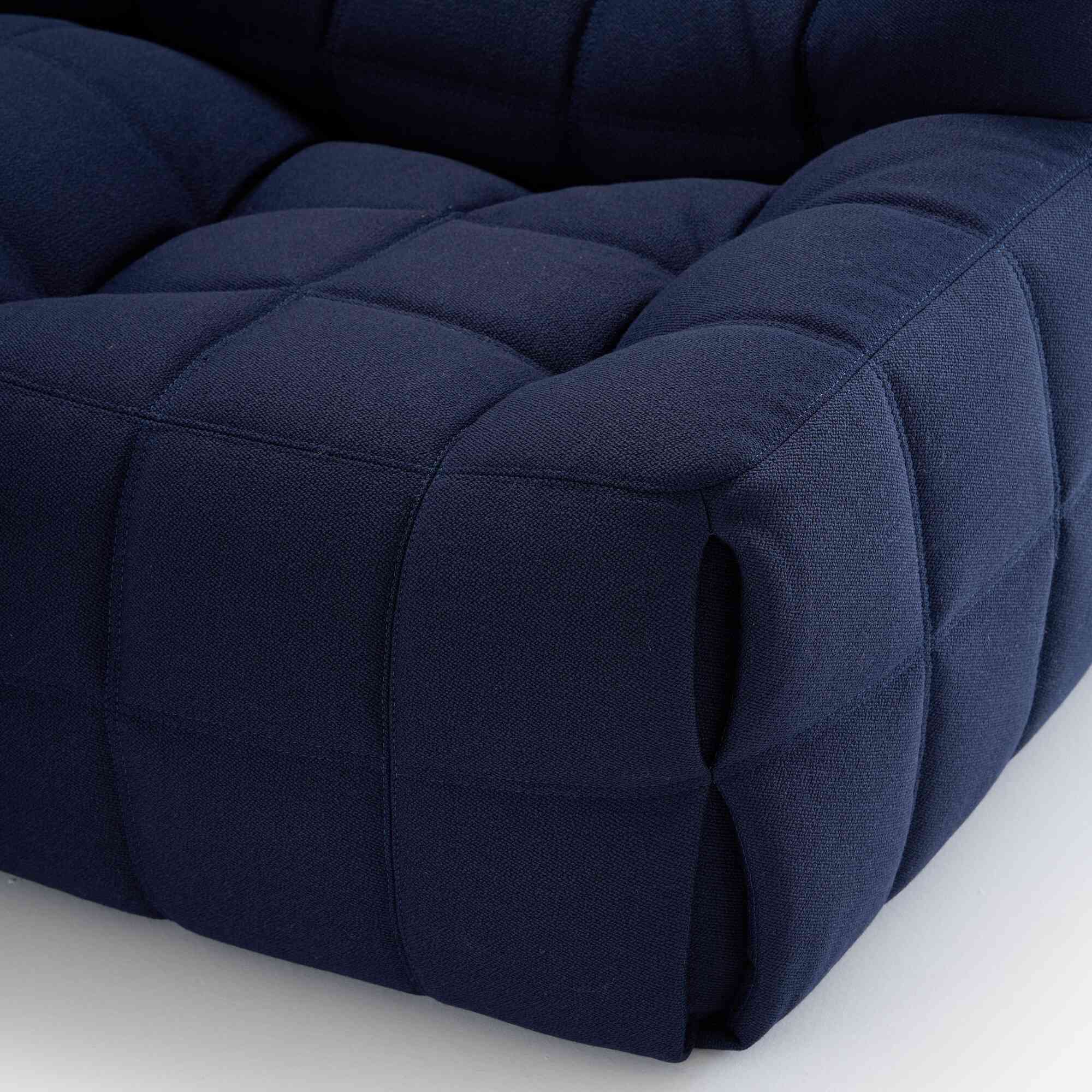 En 2023, Ligne Roset réédite son modèle emblématique Kashima. C’est le »Chesterfield confortable ». Kashima de Michel Ducaroy offre à la clientèle classique un confort »à l’anglaise ». Les formes généreuses de ce modèle permettent de donner une image rassurante à un siège tout mousse. Siège tout-mousse véritable, Kashima cache, sous son apparence accorte, un confort moelleux en arrondis et en galbes (accoudoirs, cale-reins, appui-tête intégrés). Cependant ce confort ne doit rien à une concession sur la qualité des mousses de fortes densités qui la composent. Rappelons ici que la densité d’une mousse est la seule garantie de longévité. Plus les mousses sont de densités fortes et plus le siège durera. Le capitonnage est ensuite réalisé à l’aide de tirants invisibles, disposés à l’intérieur de la mousse. Le classicisme de ses formes ne prive pas Kashima d’une pointe de fantaisie. La couverture entièrement matelassée, recouvrant le siège, forme aux angles des coutures »pincées », renforcées par lacettes intérieures. La forme en NID de l’assise, permet à l’utilisateur de s’assoir, en se calant sur les côtés.