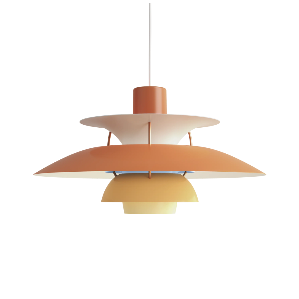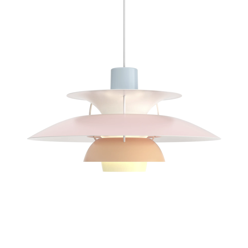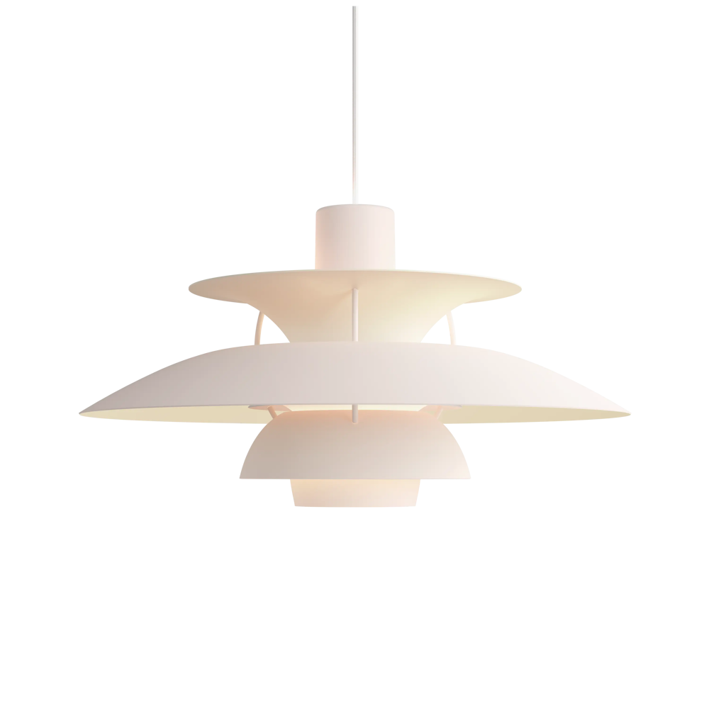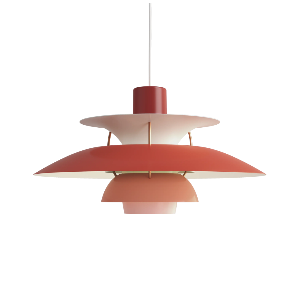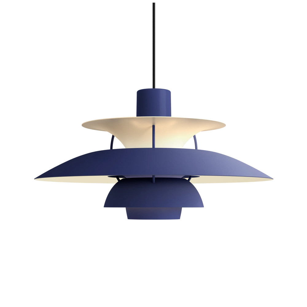 Véritable best-seller de la marque, la suspension PH5 diamètre 50 éditée par Louis Poulsen est une référence absolue en matière d’éclairage design. Imaginée par l’architecte Poul Henningsen en 1924, il aura fallu de nombreuses modifications et des années d’expérimentation pour que cette suspension iconique trouve sa forme parfaite. Inspiré par sa mère, une actrice qui ne supportait pas le rendu de l’éclairage des premières ampoules électriques sur sa peau, Poul Henningsen n’a eu de cesse d’inventer le luminaire parfait. En filtrant la lumière grâce à 3 abat-jours il parvient à la dompter et à en moduler la réflexion. Au fil des versions, la suspension PH 5 se perfectionne pour adopter sa silhouette définitive en 1958. Avec ses abat-jours imbriqués garantissant un non éblouissement absolu, la PH5 imaginée par Poul Henningsen a séduit des générations de passionnés de design et de décoration à la recherche du luminaire parfait. Fabriquée en aluminium laqué dépoli, la suspension PH5 a su traverser les époques et les styles grâce à sa ligne originale, son côté visionnaire et à la capacité de Louis Poulsen à se réinventer et s’adapter aux innovations technologiques. Les performances originelles de cette suspension design légendaire augmentées grâce aux nouvelles sources lumineuses font de la lampe PH5 un luminaire exceptionnel. Disponible en plusieurs versions colorées (voir dans caractéristiques) la suspension PH5 éditée par Louis Poulsen Lightings’accordera avec une grande variété d’intérieurs. Au fil des abat-jour la teinte du luminaire s’éclaircit, transformant cette pendant light en un élégant nuancier aérien. Omniprésente chez les particuliers et les professionnels danois depuis des générations, la suspension PH5 dessinée par Poul Henningen fait partie intégrante du paysage scandinave. Icône design absolue, la lampe PH5 aux mensurations parfaites réveillera avec délicatesse toutes les pièces de la maison, de l’entrée à la chambre à coucher en passant par le salon et la salle à manger. Figure familière des amoureux de décoration, la suspension design PH5 transcende les styles et les époques. Brillante mais non éblouissante la suspension PH5 excelle dans l’art de l’imitation : celle de reproduire sans artifices la lumière du jour. Assemblage à la main (Danemark). « La forme découle de la fonction » est la devise de la maison Louis Poulsen.