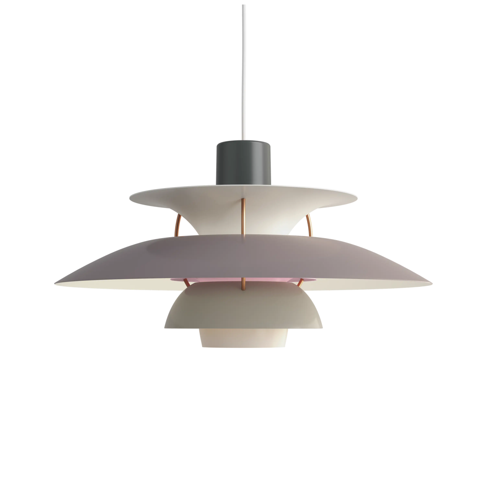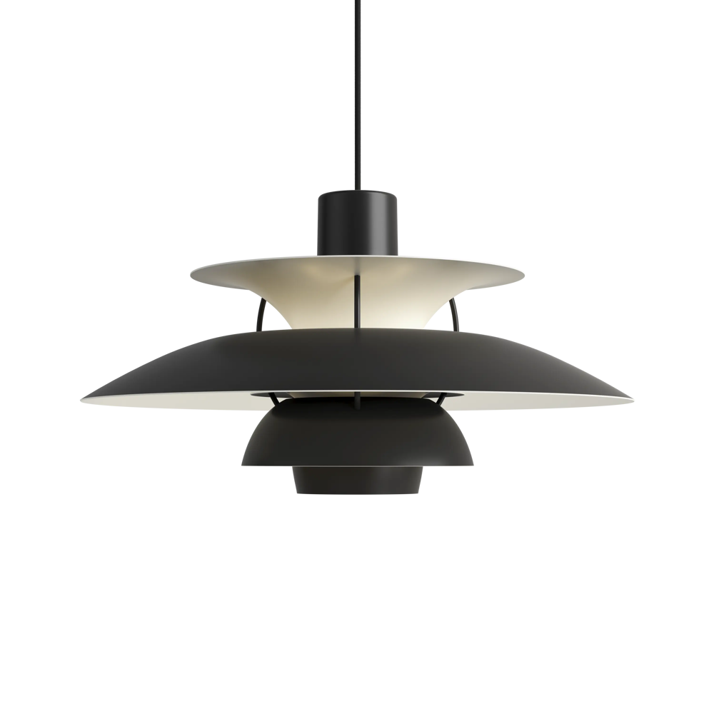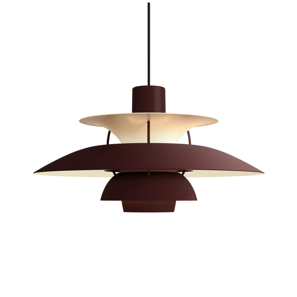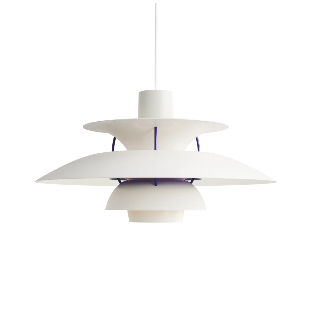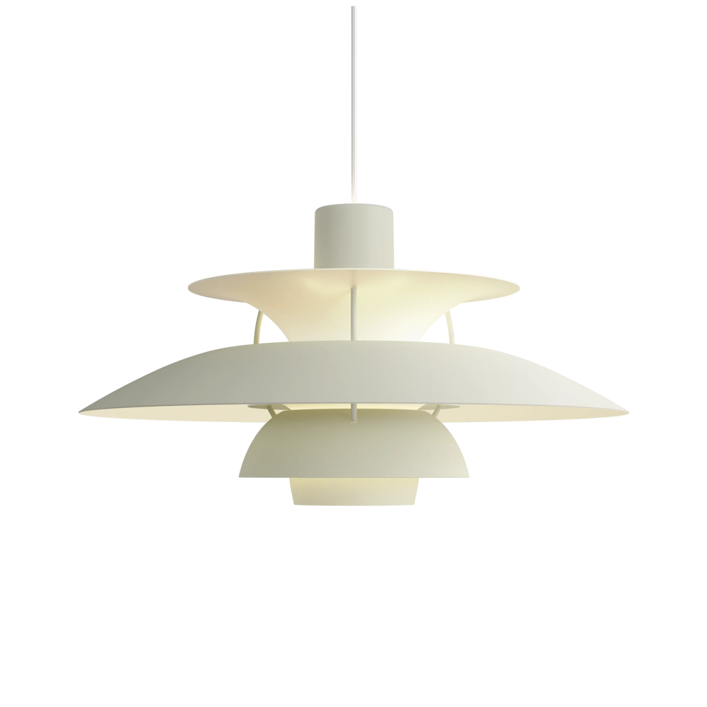 Véritable best-seller de la marque, la suspension PH5 diamètre 50 éditée par Louis Poulsen est une référence absolue en matière d’éclairage design. Imaginée par l’architecte Poul Henningsen en 1924, il aura fallu de nombreuses modifications et des années d’expérimentation pour que cette suspension iconique trouve sa forme parfaite. Inspiré par sa mère, une actrice qui ne supportait pas le rendu de l’éclairage des premières ampoules électriques sur sa peau, Poul Henningsen n’a eu de cesse d’inventer le luminaire parfait. En filtrant la lumière grâce à 3 abat-jours il parvient à la dompter et à en moduler la réflexion. Au fil des versions, la suspension PH 5 se perfectionne pour adopter sa silhouette définitive en 1958. Avec ses abat-jours imbriqués garantissant un non éblouissement absolu, la PH5 imaginée par Poul Henningsen a séduit des générations de passionnés de design et de décoration à la recherche du luminaire parfait. Fabriquée en aluminium laqué dépoli, la suspension PH5 a su traverser les époques et les styles grâce à sa ligne originale, son côté visionnaire et à la capacité de Louis Poulsen à se réinventer et s’adapter aux innovations technologiques. Les performances originelles de cette suspension design légendaire augmentées grâce aux nouvelles sources lumineuses font de la lampe PH5 un luminaire exceptionnel. Disponible en plusieurs versions colorées (voir dans caractéristiques) la suspension PH5 éditée par Louis Poulsen Lightings’accordera avec une grande variété d’intérieurs. Au fil des abat-jour la teinte du luminaire s’éclaircit, transformant cette pendant light en un élégant nuancier aérien. Omniprésente chez les particuliers et les professionnels danois depuis des générations, la suspension PH5 dessinée par Poul Henningen fait partie intégrante du paysage scandinave. Icône design absolue, la lampe PH5 aux mensurations parfaites réveillera avec délicatesse toutes les pièces de la maison, de l’entrée à la chambre à coucher en passant par le salon et la salle à manger. Figure familière des amoureux de décoration, la suspension design PH5 transcende les styles et les époques. Brillante mais non éblouissante la suspension PH5 excelle dans l’art de l’imitation : celle de reproduire sans artifices la lumière du jour. Assemblage à la main (Danemark). « La forme découle de la fonction » est la devise de la maison Louis Poulsen.