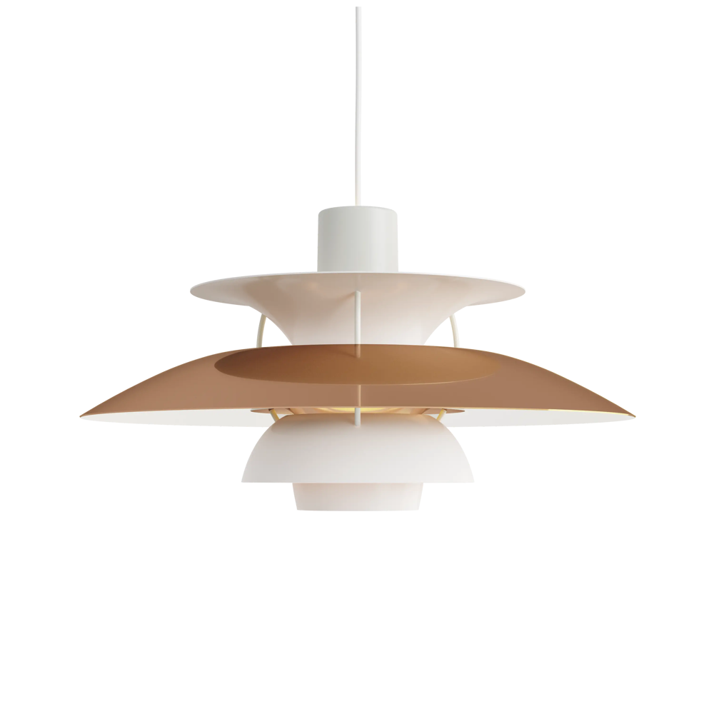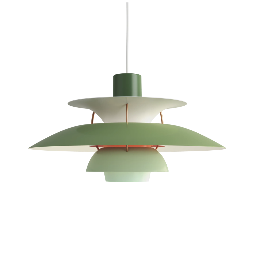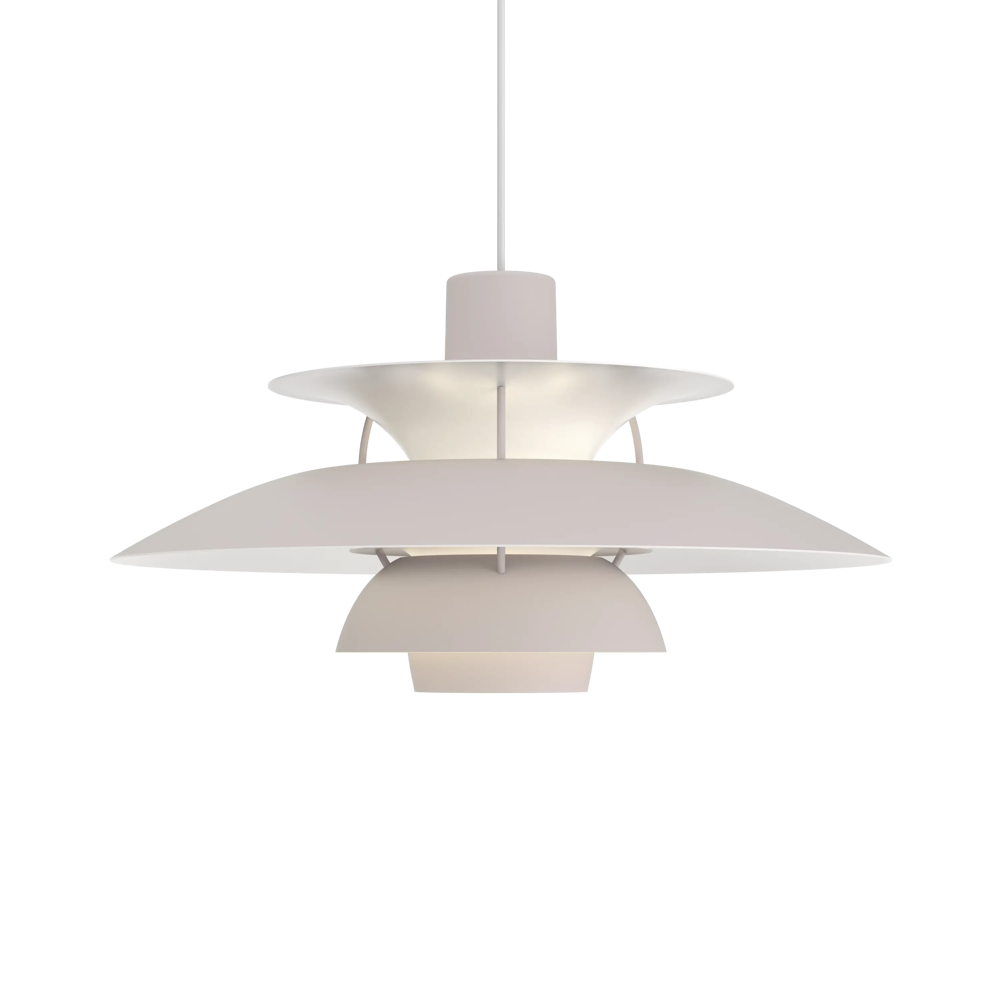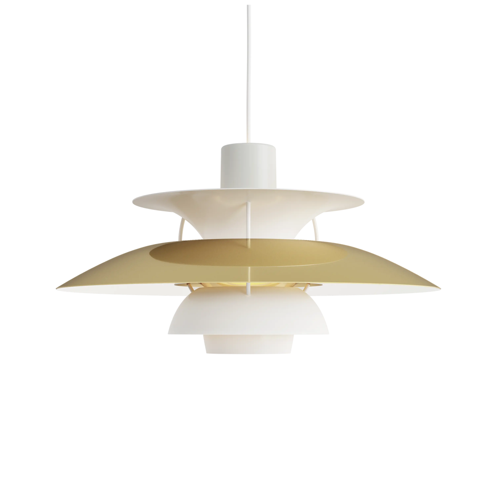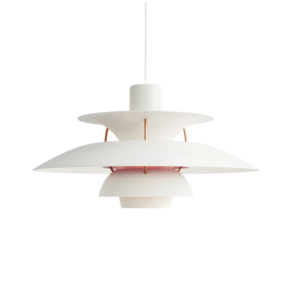 Véritable best-seller de la marque, la suspension PH5 diamètre 50 éditée par Louis Poulsen est une référence absolue en matière d’éclairage design. Imaginée par l’architecte Poul Henningsen en 1924, il aura fallu de nombreuses modifications et des années d’expérimentation pour que cette suspension iconique trouve sa forme parfaite. Inspiré par sa mère, une actrice qui ne supportait pas le rendu de l’éclairage des premières ampoules électriques sur sa peau, Poul Henningsen n’a eu de cesse d’inventer le luminaire parfait. En filtrant la lumière grâce à 3 abat-jours il parvient à la dompter et à en moduler la réflexion. Au fil des versions, la suspension PH 5 se perfectionne pour adopter sa silhouette définitive en 1958. Avec ses abat-jours imbriqués garantissant un non éblouissement absolu, la PH5 imaginée par Poul Henningsen a séduit des générations de passionnés de design et de décoration à la recherche du luminaire parfait. Fabriquée en aluminium laqué dépoli, la suspension PH5 a su traverser les époques et les styles grâce à sa ligne originale, son côté visionnaire et à la capacité de Louis Poulsen à se réinventer et s’adapter aux innovations technologiques. Les performances originelles de cette suspension design légendaire augmentées grâce aux nouvelles sources lumineuses font de la lampe PH5 un luminaire exceptionnel. Disponible en plusieurs versions colorées (voir dans caractéristiques) la suspension PH5 éditée par Louis Poulsen Lightings’accordera avec une grande variété d’intérieurs. Au fil des abat-jour la teinte du luminaire s’éclaircit, transformant cette pendant light en un élégant nuancier aérien. Omniprésente chez les particuliers et les professionnels danois depuis des générations, la suspension PH5 dessinée par Poul Henningen fait partie intégrante du paysage scandinave. Icône design absolue, la lampe PH5 aux mensurations parfaites réveillera avec délicatesse toutes les pièces de la maison, de l’entrée à la chambre à coucher en passant par le salon et la salle à manger. Figure familière des amoureux de décoration, la suspension design PH5 transcende les styles et les époques. Brillante mais non éblouissante la suspension PH5 excelle dans l’art de l’imitation : celle de reproduire sans artifices la lumière du jour. Assemblage à la main (Danemark). « La forme découle de la fonction » est la devise de la maison Louis Poulsen.