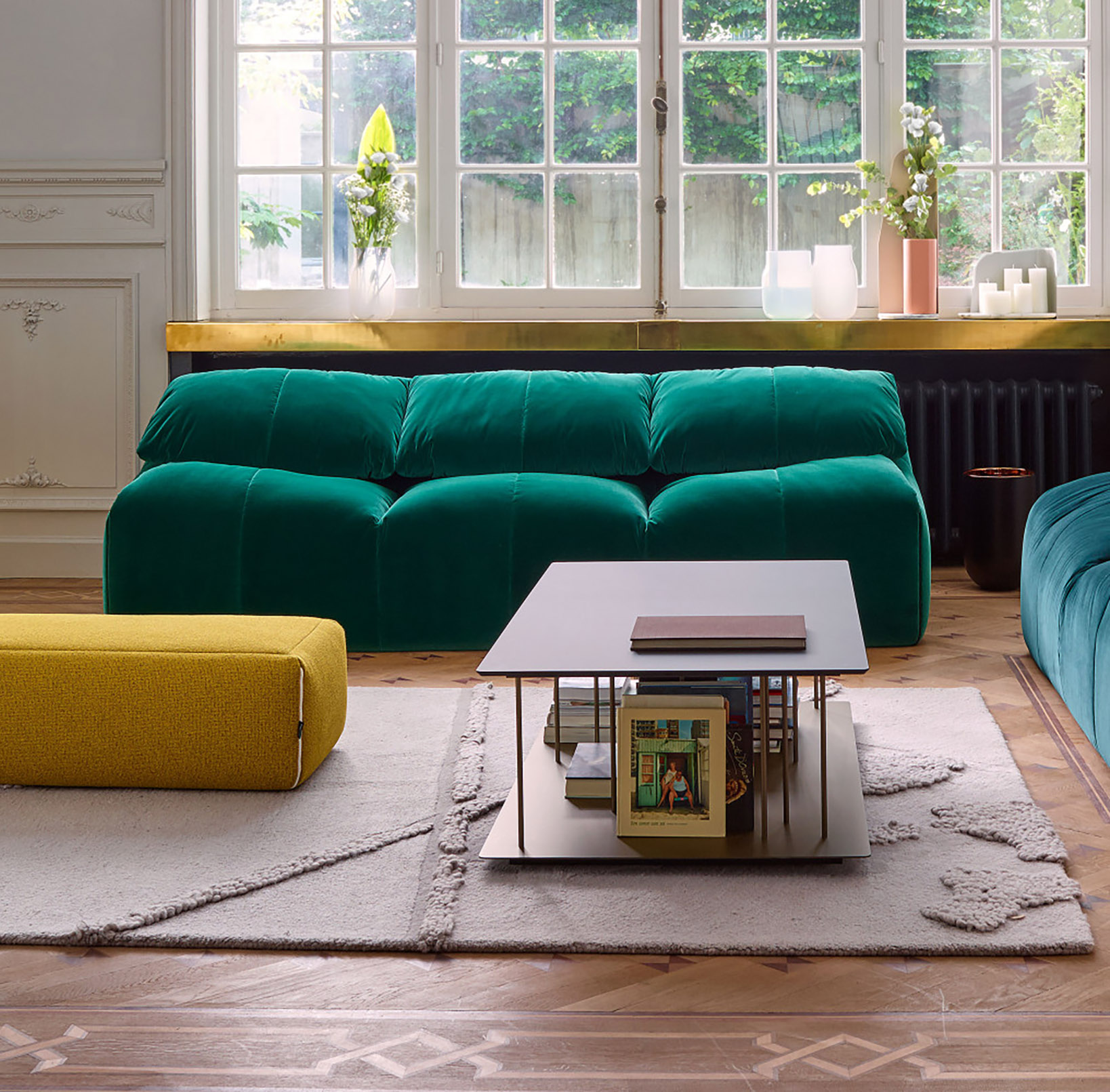 Moyen Canapé : L. 192 cm x P. 98 cm x H. 78 cm / Hauteur d’assise: 40 cm. Grand Canapé : L. 237 cm x P. 98 cm x H. 78 cm / Hauteur d’assise: 40 cm.