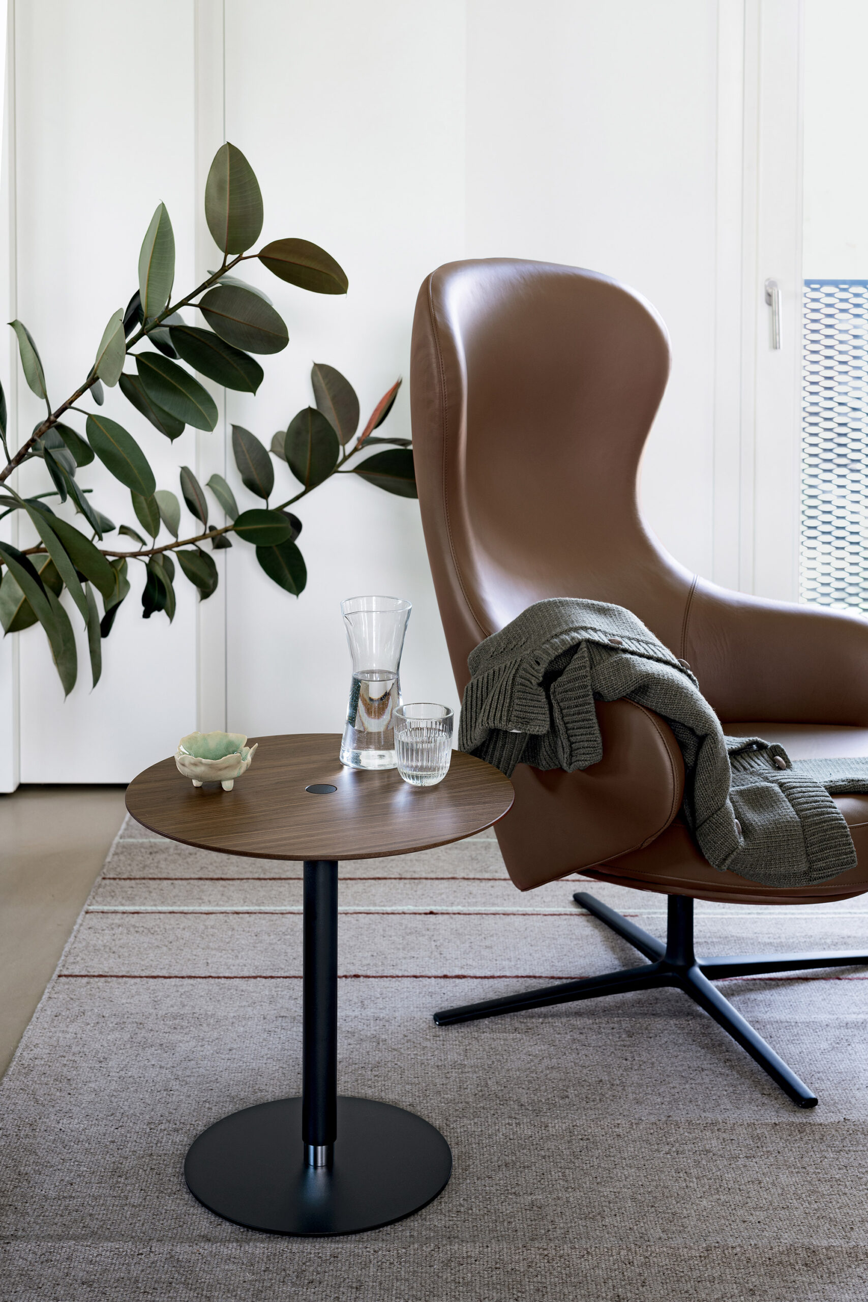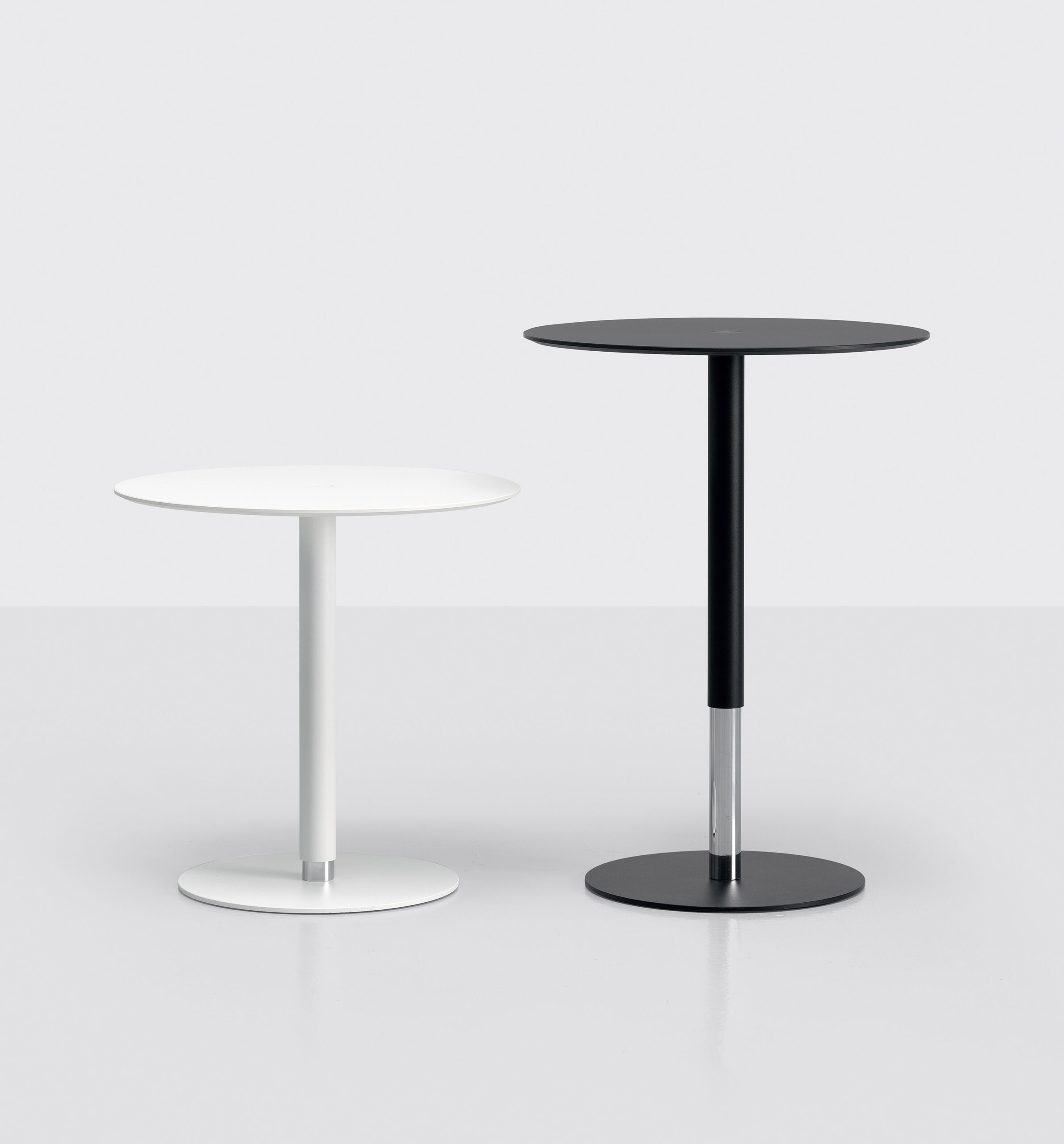 Son nom est tout un programme (Push The Button): il suffit d’appuyer sur le bouton au milieu du plateau pour régler la hauteur de cette petite table. Idéale à côté d’un canapé, elle secompose d’un plateau et d’une embase, de forme ronde, reliés par une structure centrale servant à masquer le mécanisme à gaz. Un meuble de complément, simple, épuré et extrêmement fonctionnel.