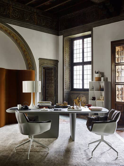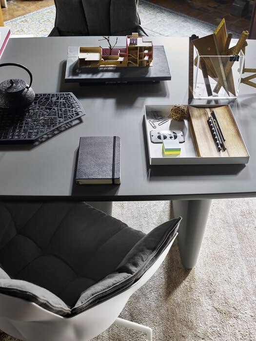 Disponible à la fois ronde et rectangulaire aux extrémités arrondies, Tobi-Ishi est une table sculpturale qui fait référence, stylistiquement et dans son nom même, aux pierres ornementales utilisées dans les jardins japonais traditionnels. Cette table emblématique rassemble des caractéristiques fonctionnelles avec une apparence sculpturale, avec des résultats vraiment étonnants. Le plateau en surplomb et les bases ont un aspect différent selon le point de vue, tandis que les différentes finitions confèrent à la table des interprétations très personnelles : du coulis de ciment au marbre ou au bois, et du laquage mat dans une large gamme de couleurs au laquage brillant également dans un rouge bonbon sophistiqué. et des teintes bleues fumées. Avec sa ligne sculpturale, Tobi-Ishi devient le protagoniste de l’espace.